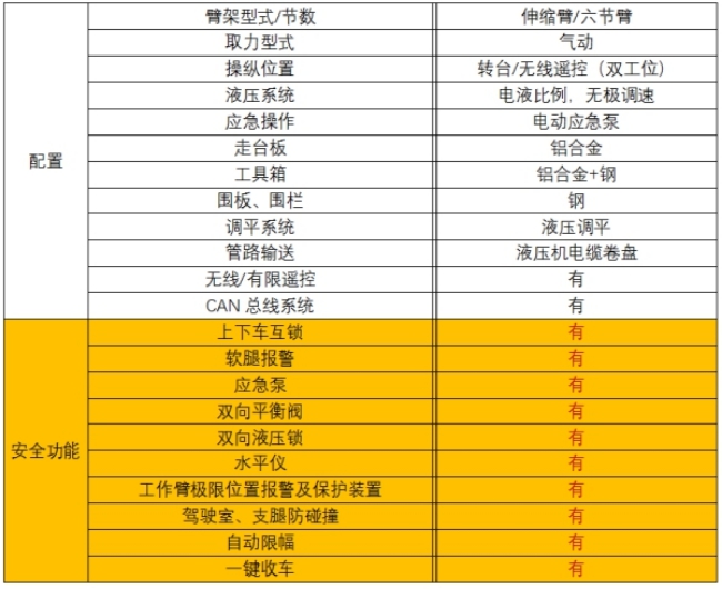 1 七节伸缩臂结构,伸缩更平稳,外形尺寸更小。2 双级支腿,额定载荷300kg时作业幅度可达18m,作业范围更广。3 铝合金可扩展、多